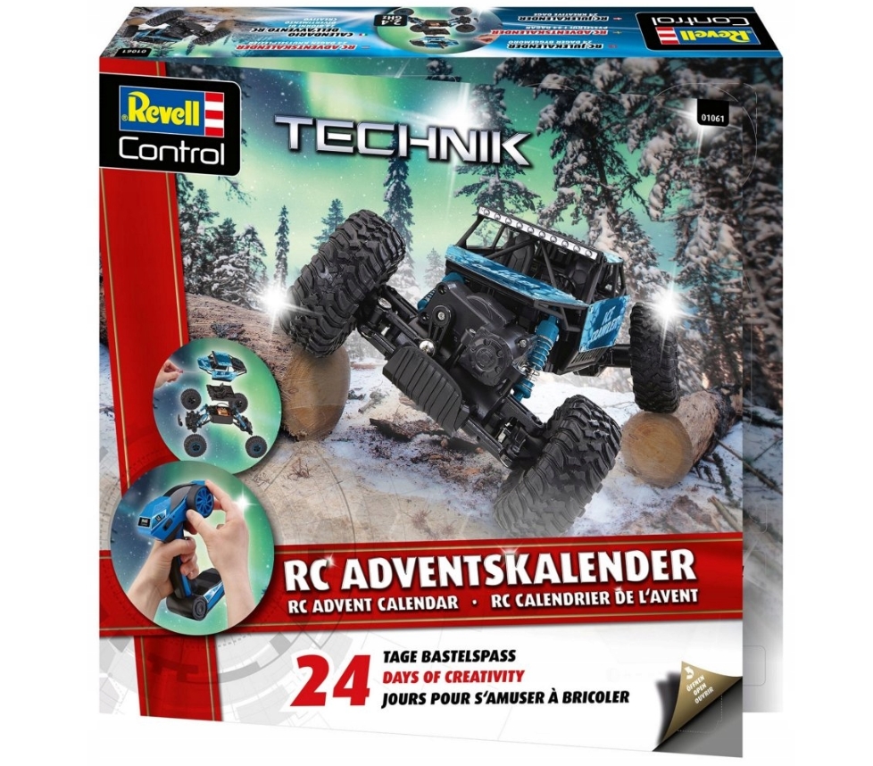 Uživajte v adventu polnem tehnike in zabave z RC Crawlerjem Revell Control! Ta edinstveni adventni koledar vas vodi skozi 24 korakov, na koncu katerih nastane v veličasten model terenskega avtomobila v merilu 1:18. Idealno za otroke od 8 let, ki obožujejo sestavljanje, RC tehnologijo in vznemirljive izzive.