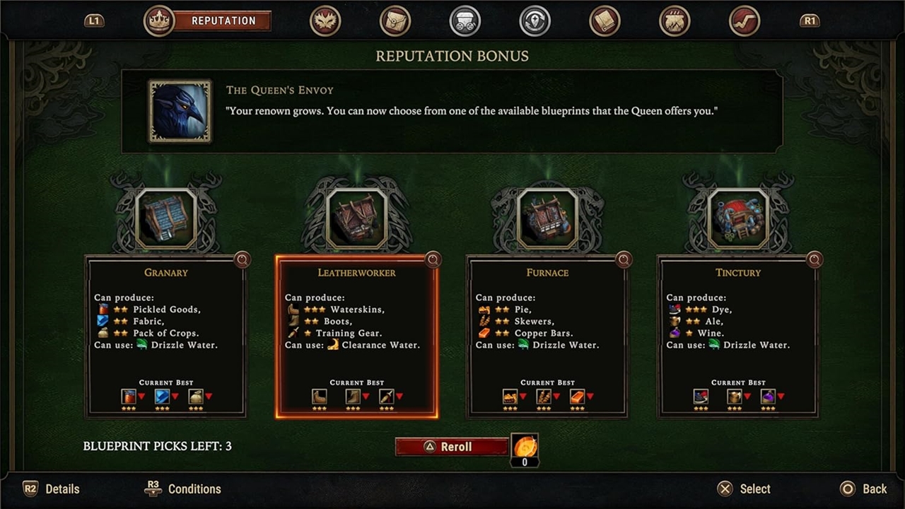 Spravujte rozmanitou populaci vesničanů: Lišky, bobři a ještěři bojují o přežití po boku lidí a harpyjí. Využívejte předností každé z těchto skupin a při tom vyvažujte jejich odlišné potřeby od preferencí stran ubytování a stravování až po zálibu v určitém druhu přepychu nebo způsobu trávení volného času. Budete vyrábět nepromokavé pláště, vařit pivo a péct koláče, abyste posílili morálku vesničanů tváří v tvář skličující nevraživosti lesa, nebo dáte přednost potřebám jednoho konkrétního druhu před ostatními, aby plnění vašeho úkolu pro Spálenou královnu postupovalo co nejrychleji?