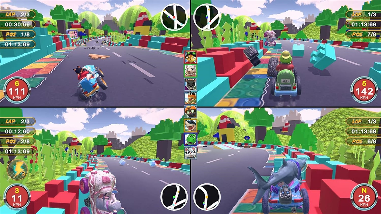 Ste pripravljeni pospešiti, izstreliti rakete in svoje nasprotnike zvoziti s ceste? Animal Kart Racer je hitra in zabavna dirkaška igra, ki bo preizkusila vaše vozniške sposobnosti! Igrajte posamezne proge ali tekmujte v turnirjih. Igrajte s prijatelji v lokalnem načinu za več igralcev – do 4 igralcev – delite zabavo!