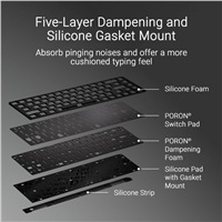 Izboljšane možnosti tipkanja: Vgrajeno petplastno dušenje in silikonsko tesnjenje vpijata zvoke cinkanja in nudita bolj pridušen občutek pri tipkanju