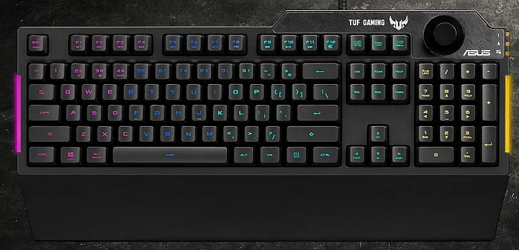 Taktilni TUF Gaming stikali z 19 tipkami in funkcijo rollover za hitro odzivnost in zanesljivo delovanje