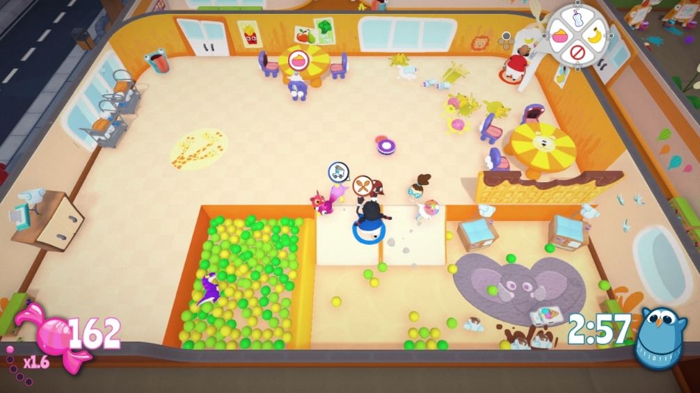 Ohranjajte red, tecite, pospravljajte in hranite otroke, da dosežete najvišji rezultat, v solo načinu ali lokalnem večigralstvu za do 4 igralce! Vaša naloga je skrbeti za prikupne (in včasih nagajive) otroke v vrtcu! Opremljeni ste z igračami, hrano, robčki in plenicami ter celo z daljinsko vodenim sesalcem, ki vam bo pomagal pri pospravljanju. Če ste na tej nalogi sami, imate na voljo koristno nadgradnjo: teleport, ki vam omogoča hitrejše premikanje. Poskrbite, da boste želje otrok izpolnili pravočasno, da ne bodo zajokali, saj bi to izničilo vaš rezultat! Hiter nasvet: ti otroci se lahko obnašajo grobo, a potrebujejo le malo ljubezni in objemov. Samo izogibajte se tistim, ki grizejo! Obiščite kraje po vsem svetu in celo potujte skozi čas! Prebijte se skozi pametne in izvirne stopnje, zberite veliko točk, odklenite nove faze in funkcije ter spoznajte posebne otroke s skrivnostnimi sposobnostmi... Če uspeš v svoji misiji, boste postali najboljša varuška v vesolju!