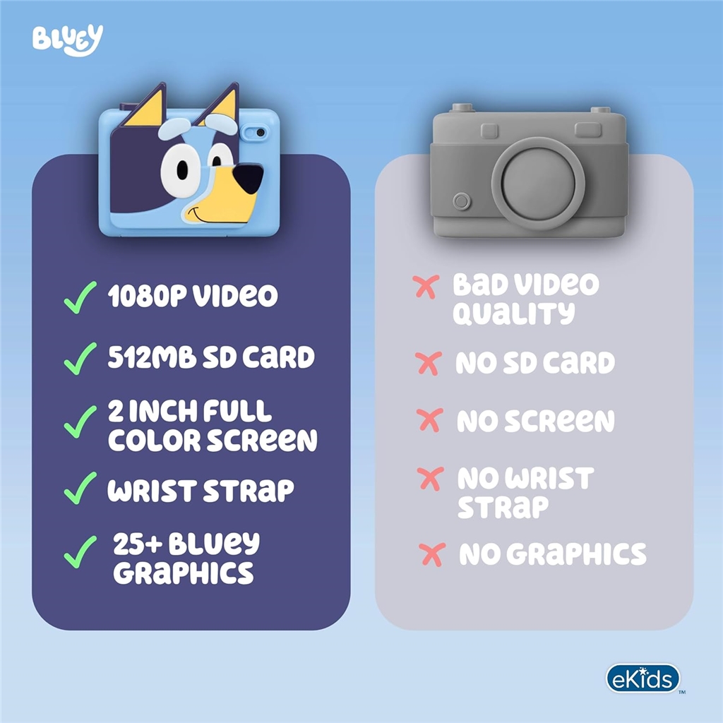 - Oblikovanje Bluey: Ta fotoaparat izstopa z edinstveno zasnovo, navdihnjeno s priljubljenim likom Bluey.