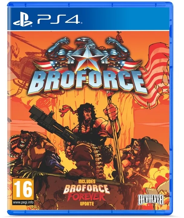 Ko zlo ogroža svet, se pokliče Broforce - premalo financirano in premočno polovojno organizacijo. Pripravite pasove za do štirih igralcev, da boste lahko tekli in streljali kot desetine različnih Brosov ter izničili sovražne teroristične sile, ki ogrožajo naš način življenja. Sprožite šok in grozo z desetinami Brosov, od katerih ima vsak svoje edinstveno orožje in posebne napade, namenjene uničenju svobode po vsem svetu. Borite se proti terorizmu v kooperativnem načinu za do štiri igralce ali prekinite vezi s prijatelji in se pomerite drug proti drugemu v več bombastičnih tekmovalnih režimih. Uničljiv teren odpira vrsto strateških možnosti, medtem ko množica eksplodirajočih rdečih sodov pravičnosti lahko dobesedno poravna sile z enim samim strelom.