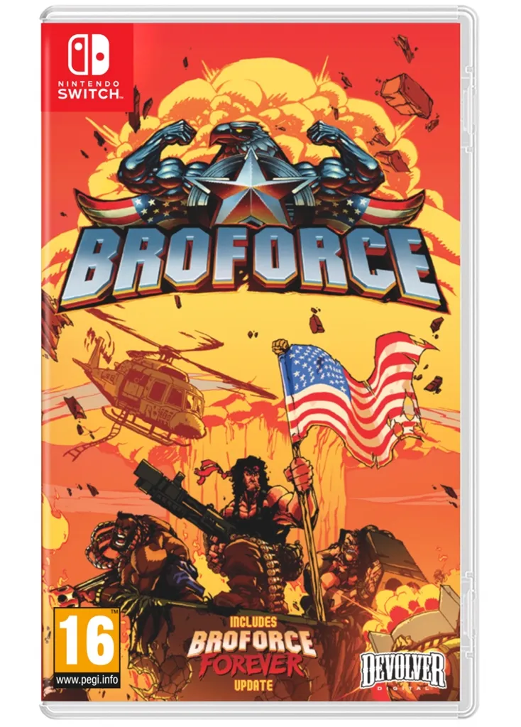 Ko zlo ogroža svet, pokličejo Broforce - slabo financirano in premočno polovojno organizacijo. Pripravite se na do štirih igralcev, da boste lahko tekali in streljali kot desetine različnih Brosov ter izničili sovražne teroristične sile, ki ogrožajo naš način življenja. Sprožite šok in grozo s desetinami Brosov, od katerih ima vsak svoje edinstveno orožje in posebne napade, namenjene uničenju svobode po vsem svetu. Borite se proti terorizmu v kooperativnem načinu za do štirih igralcev ali prekinite vezi s prijatelji in se pomerite drug proti drugemu v več bombastičnih tekmovalnih načinih. Uničljiv teren odpira številne strateške možnosti, medtem ko množica eksplodirajočih rdečih sodov pravičnosti lahko dobesedno poravna sile z enim samim strelom.