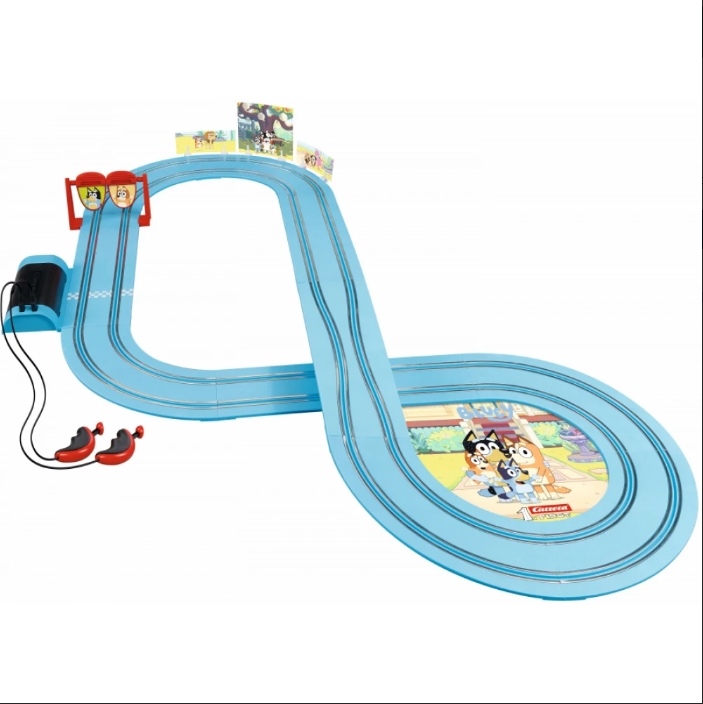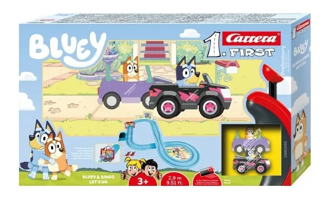 Vstopite v svet zabavnih dirk s dirkalno stezo Carrera FIRST Bluey & Bingo, ki je idealna kot prva dirkalna steza za otroke od 3. leta. Steza dolžine 2,9 metra prinaša veliko akcije, smeha in napetosti – otroci se lahko zabavajo ob dirkah priljubljenih junakov Bluey in Bingo ter hkrati razvijajo motorične sposobnosti in koncentracijo.