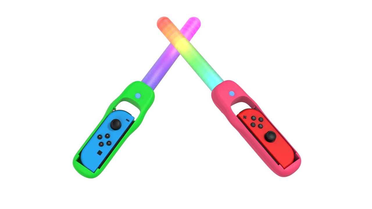 Dance ‘N’ Play Kit vsebuje 2x LED svetlobni palički, občutljivi na zvok, z rožnatim in zelenim držalom ter zapestnimi trakovi. LED svetlobni palički, občutljivi na zvok, z večbarvnim učinkom mavričnega osvetljevanja bodo delovali, utripali, žareli in plesali v skladu z vsakim zvokom. Naj bo to glasba ali zvoki iz igre, Dance ‘N’ Play Kit bo osvetlil vašo sobo.