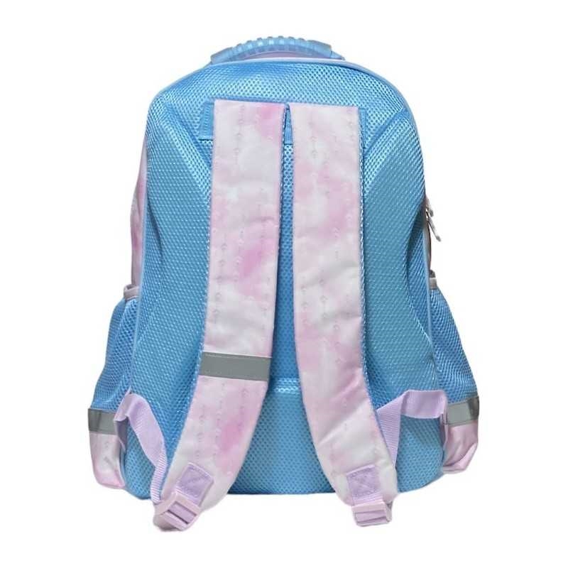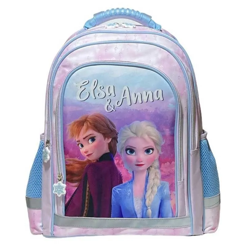 Otroški nahrbtnik z dimenzijami 42 x 30 x 16 cm na motiv Disney: Frozen (Ledeno kraljestvo). Nahrbtnik ima dva večja in en manjši sprednji žep z zadrgo. Nastavljivi naramni trakovi omogočajo udobno nošenje. Ročaj na zgornji strani nahrbtnika za lažje prijemanje.