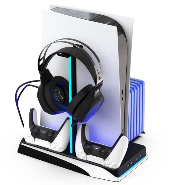 PS5 DLX+ LED večfunkcijsko polnilno, hladilno in shranjevalno stojalo z LED osvetlitvijo.