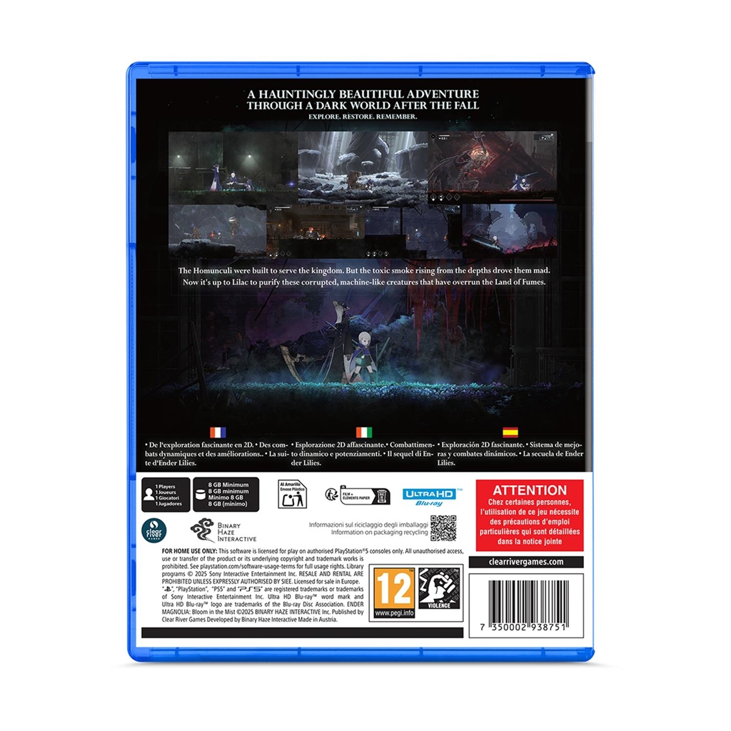 ENDER MAGNOLIA je temna fantazijska 2D akcijska RPG igra s stranskim pomikanjem, v kateri se odpraviš na potovanje po pusti deželi Fumes in poskušaš rešiti ljudi in homunkule. Kraljestvo, ki stoji na vrhu magičnega in mehaničnega razvoja, sestavlja hierarhična družbena struktura. Tu naletite na zapuščena mesta, odkrijete laboratorije s strašnimi skrivnostmi, veličastno čarovniško akademijo, kolosalne tovarne in še veliko več. Pred vami se bo razvil strašljivo lep in hkrati grozen svet ENDER MAGNOLIA.