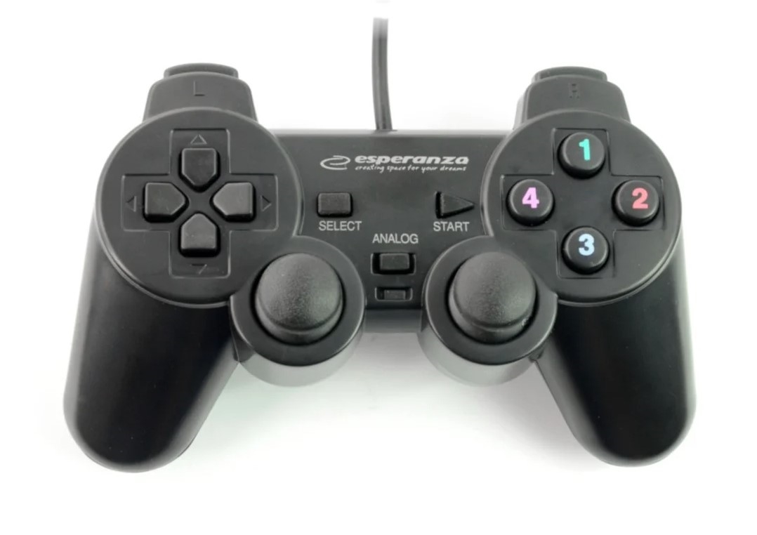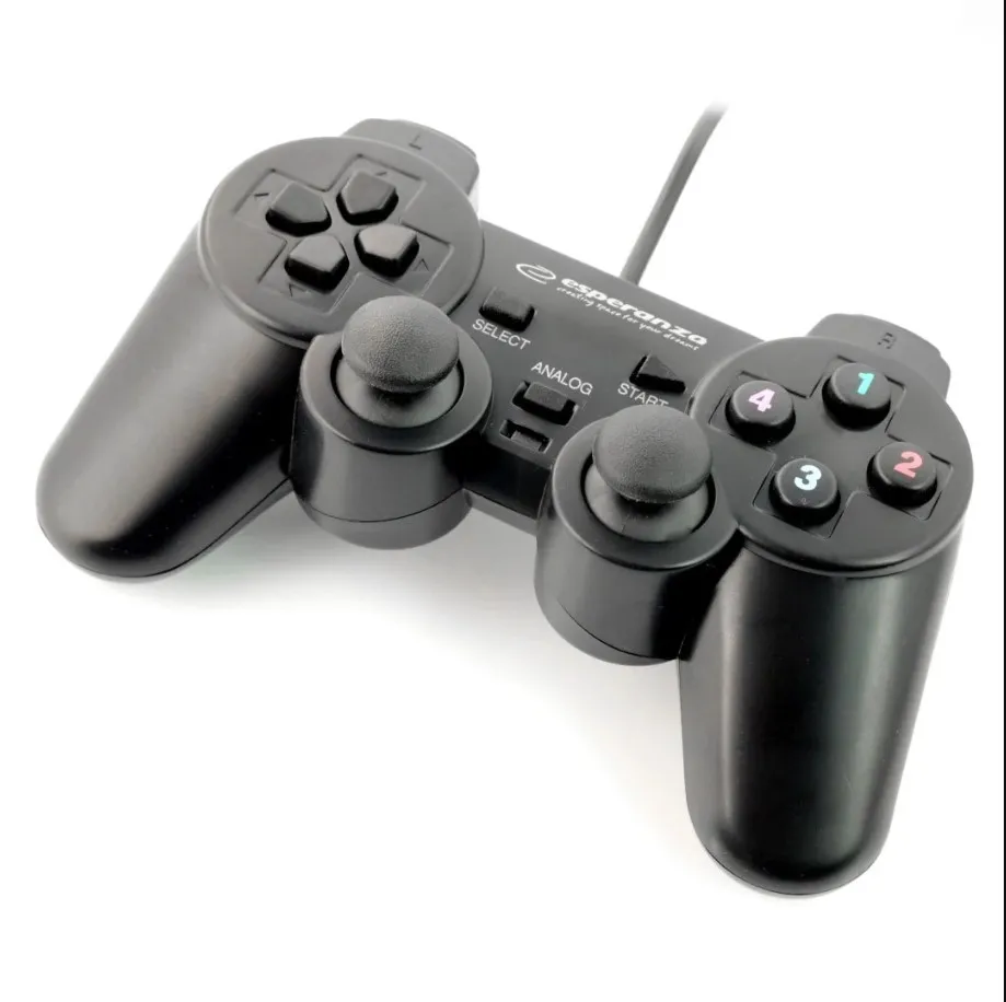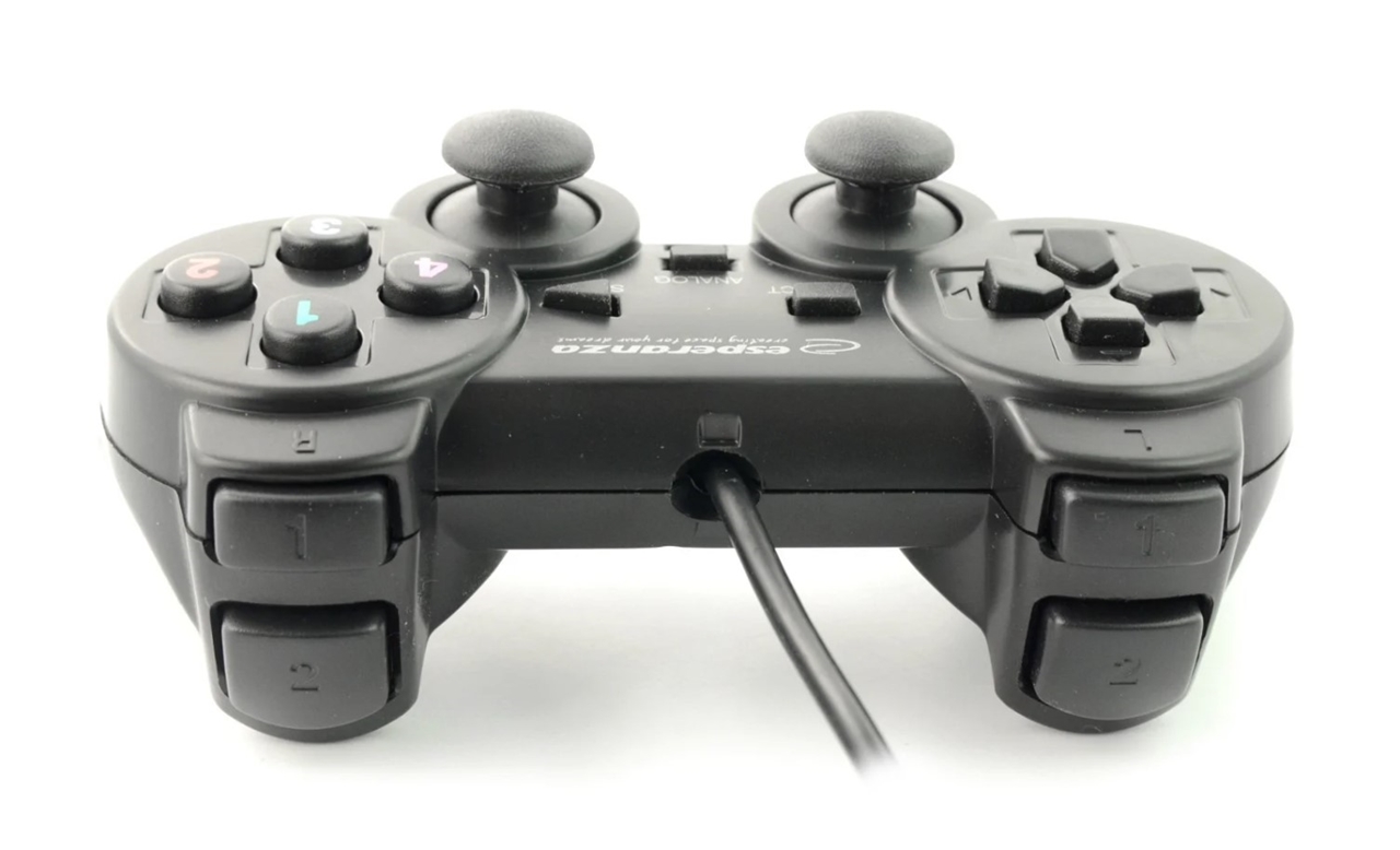 Kabelska podloga za PC z vibracijskim sistemom. Ergonomska oblika zmanjšuje utrujenost rok med igranjem. Ima 12 funkcijskih gumbov, dve analogni paličici in 8-smerni D-pad. Komunicira z napravo prek USB priključka. Gamepad je opremljen s 180 cm kablom.