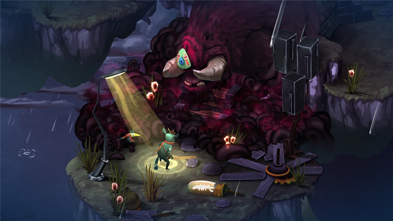 Razigrano ročno risano vesolje: Doživite, kako oživijo tradicionalni ročno naslikani potezi s čopičem v svetu, polnem nadrealistične umetnosti, barvitih ilustracij in očarljivih likov. Odkrijte edinstvene umetniške sloge veselih otokov svobode, svetlega mesta Clockwork Town in zloveščih poti.