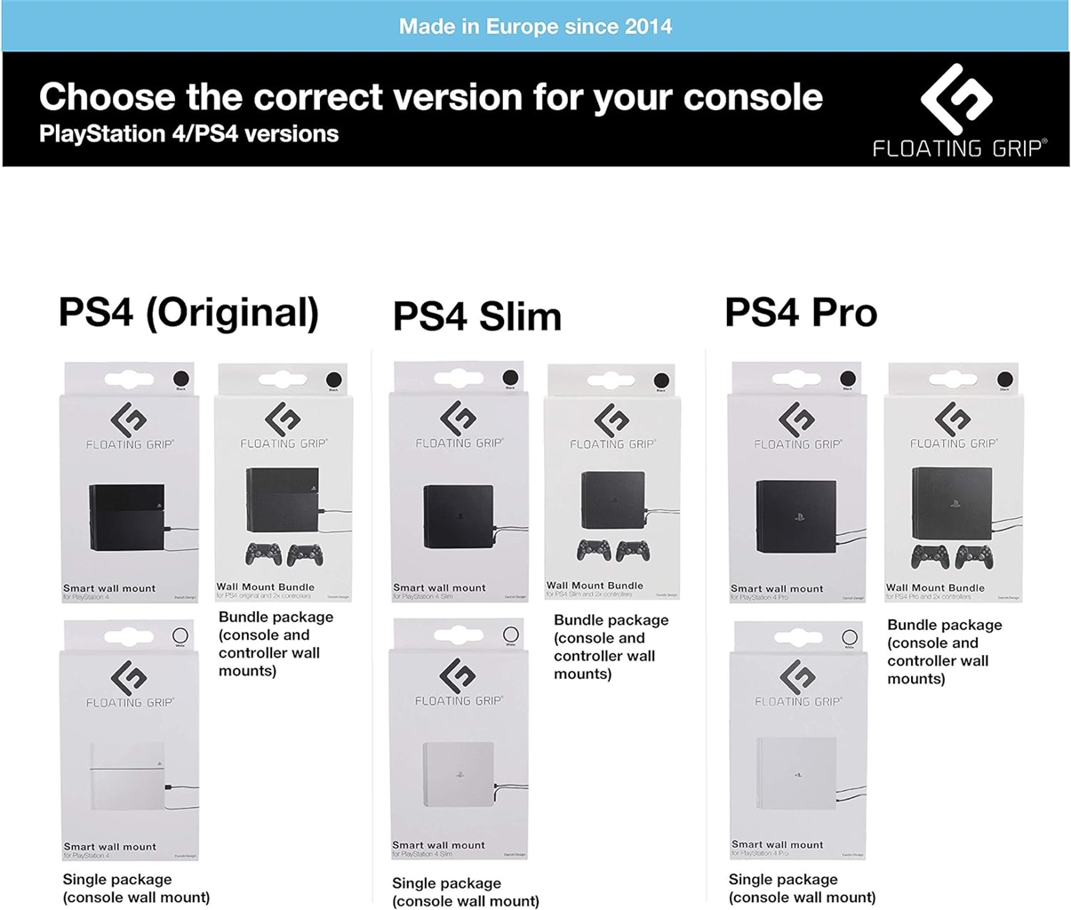 Stenski nosilec za vašo konzolo. Enostavna montaža na steno. Namestite ga neposredno poleg televizorja ali ga skrijte za televizor in dobite minimalističen videz. Prihranite prostor v svojem igralnem prostoru in pozabite na vse kable, ki so razmetani in izgledajo kaotično.