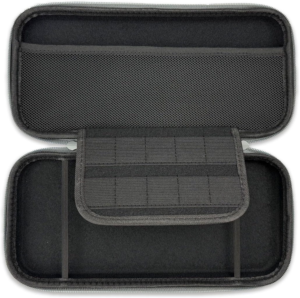 Ohišje je odporno ne le proti udarcem in pritisku, temveč zaradi uporabe sodobnega elastomerskega polimera EVA nudi tudi osnovno odpornost proti vodi. Razdelilec na sredini ohišja bo zaščitil zaslon konzole pred praskami, v žepkih na njegovi zgornji strani pa lahko shranite tudi do deset kartic z vašimi najljubšimi igrami. V mrežastem žepu je nato dovolj prostora za manjše dodatke.