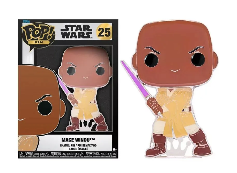 Pin je približno 10 cm visok, tako kot Funko Pop, na katerem temelji. Odznak ima ne le standardni zadnji del za pripenjanje, temveč tudi stojalo za zatiče „Funko Crown“, ki mu omogoča, da stoji!