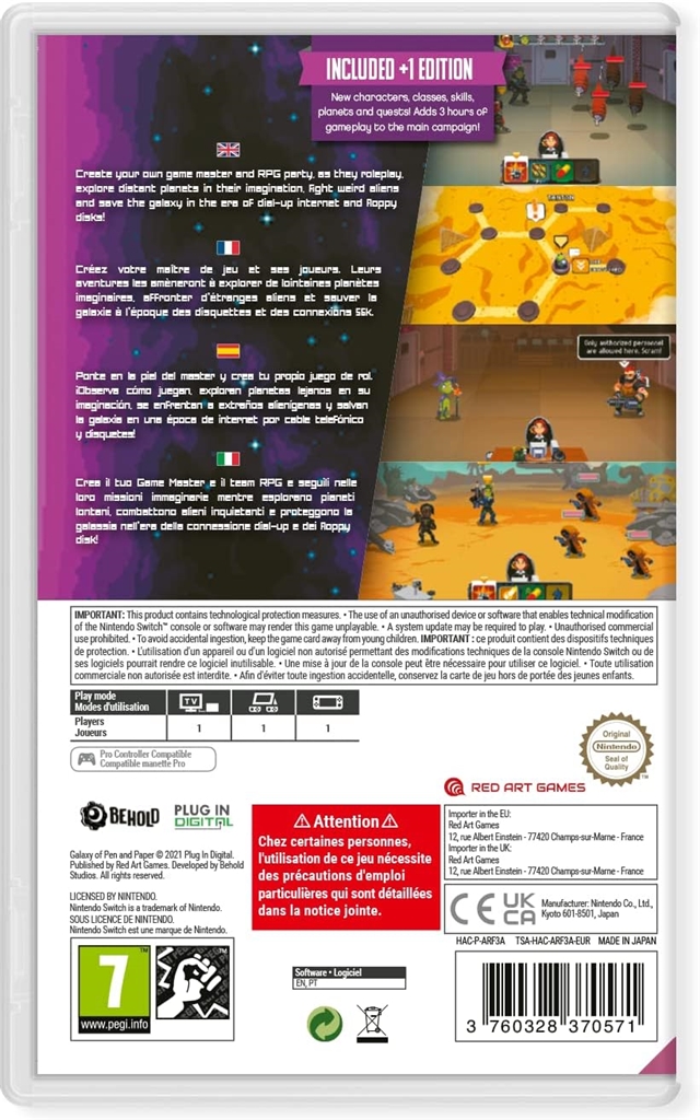 Galaxy of Pen & Paper je potezno RPG, ki vzame pero in papirnate igre iz vašega otroštva in jih spusti v vesolje. Dogaja se leta 1999, kjer skupina prijateljev kljubuje nevarnostim čudne nove galaksije, oborožena s kockami in edinstvenimi nabori veščin. Igralec si ustvari svojega Game Masterja in sestavi ekipo, v kateri bo odigral vrsto čudnih in vznemirljivih kampanj, pridobival prestiž in odklepal nove veščine. Galaxy of Pen & Paper razširja koncepte svojega predhodnika, Knights of Pen & Paper, s tem, da ponuja obsežnejši vesoljski ambient, večjo raznolikost ras in nova domiselna znanstvenofantastična okolja.