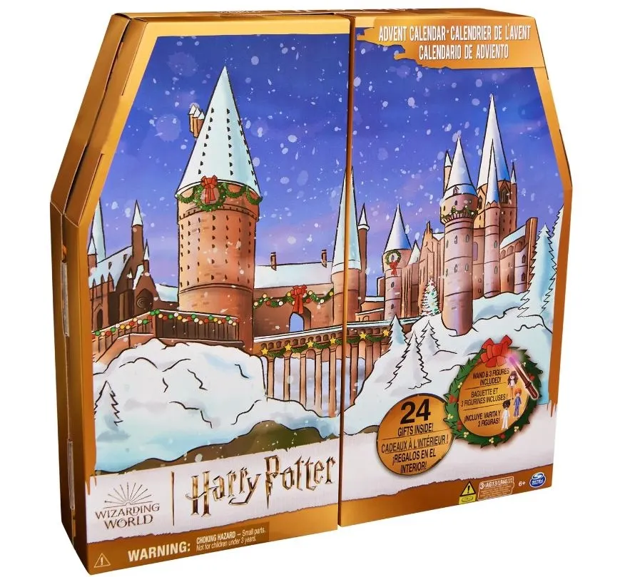 Ta čarobni adventni koledar Harry Potter bo razveselil vse oboževalce sveta čar in magije! S 24 presenečenji, ki polepšajo predpraznični čas, lahko otroci vsak dan odkrijejo nove čarobne predmete. V koledarju bodo našli Harryjevo paličico z UV svetlobo, figurice Harryja, Rona in Hermione, puloverje, šale, klobuk, nevidni plašč in še veliko drugih čarobnih predmetov.