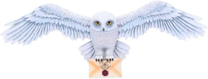 Velika figurica sove Hedvige, ki služi kot stenska dekoracija, bo zagotovo razveselila vsakega oboževalca čarovniške sage avtorice J. K. Rowling. Ta velika figurica (45 cm) je narejena iz poliresina, izoblikovana do najmanjših podrobnosti in ročno pobarvana.