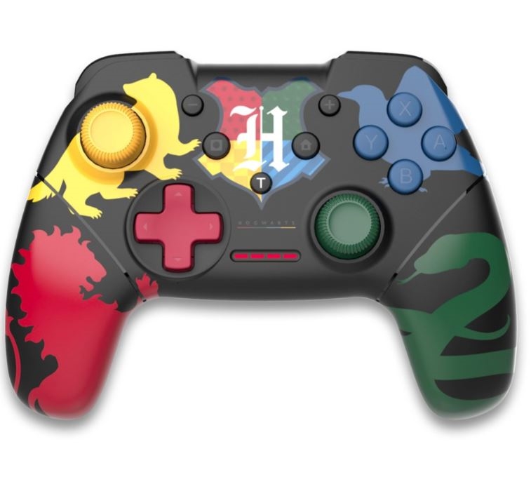 Brezzični krmilnik v slogu legendarnega Harryja Potterja z motivom štirih bradavških hiš, združljiv s konzolama Nintendo Switch in Nintendo Switch OLED. Krmilnik deluje brezžično do 8 ur, pri čemer je mogoče nadaljevati z igranjem tudi med polnjenjem s priloženim 1 m dolgem USB-C kablom. Krmilnik ima tudi funkcijo vibracij in 4 LED-indikatorje.