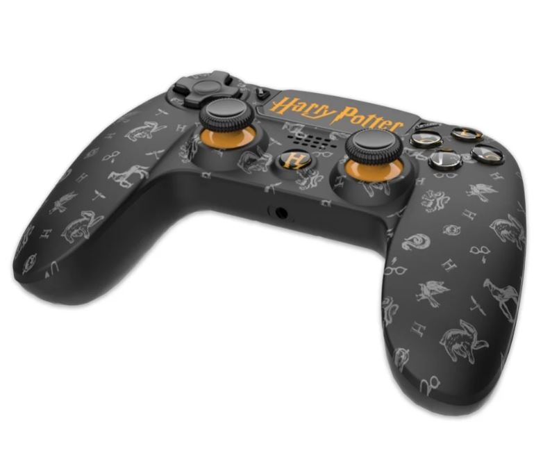 Uradno licenciran brezžični krmilnik v slogu legendarnega Harryja Potterja, združljiv s konzolo PlayStation 4. Krmilnik je mogoče polniti s priloženim 1 m micro USB kablom. Krmilnik ima tudi vibracijsko funkcijo in osvetljene tipke.