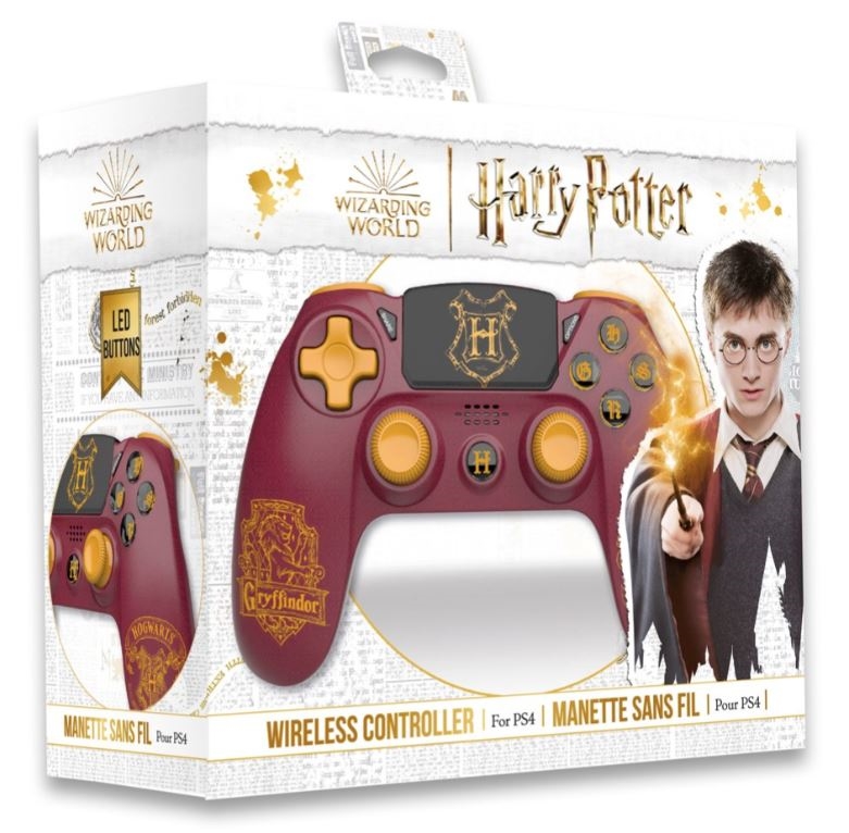Uradno licenciran brezžični krmilnik v slogu legendarnega Harryja Potterja, združljiv s konzolo PlayStation 4. Krmilnik je mogoče polniti s priloženim 1 m mikro USB kablom. Krmilnik ima tudi funkcijo vibracij in osvetljene gumbe.