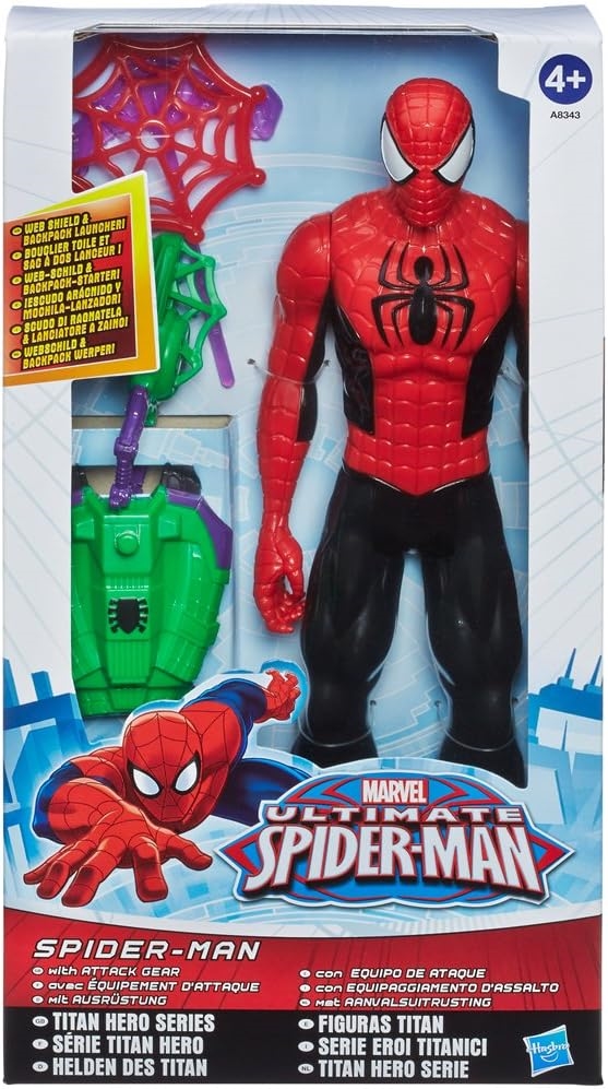 Ko morate braniti najšibkejše, Spider-Man se nikogar ne boji, toda tudi superjunak potrebuje novo opremo. S posebnim ščitom Ranblain se lahko Spider-Man upira vsakemu napadu, medtem ko mu pripravljen nahrbtnik omogoča zasledovanje sovražnikov med begom z osupljivimi skoki! Dodatki so združljivi z večino ostalih figur iz serije Titan Hero (vsaka se prodaja posebej). Primerno za otroke od 4. leta.