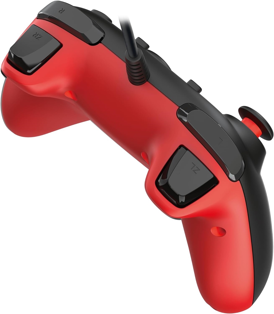 Robusten žični igralni krmilnik Horipad Turbo za Nintendo Switch od podjetja HORI. Krmilnik ima dve analogni paličici, ergonomsko ročico in turbo funkcijo.