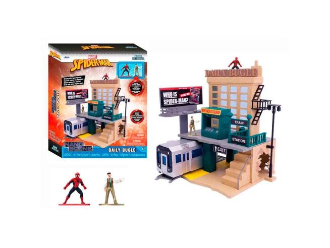 Diorama z dodatki, velikost približno 20 cm. Združljivo z vsemi figuricami Spider-Mana iz serije Nano Metalfigs.