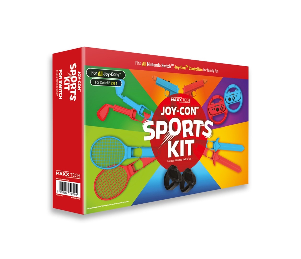 12v1 Joy-Con Sports Kit je združljiv z obema konzolama Nintendo Switch™ 2 in 1, kar vam omogoča, da uživate v svojih najljubših igrah na kateri koli konzoli.