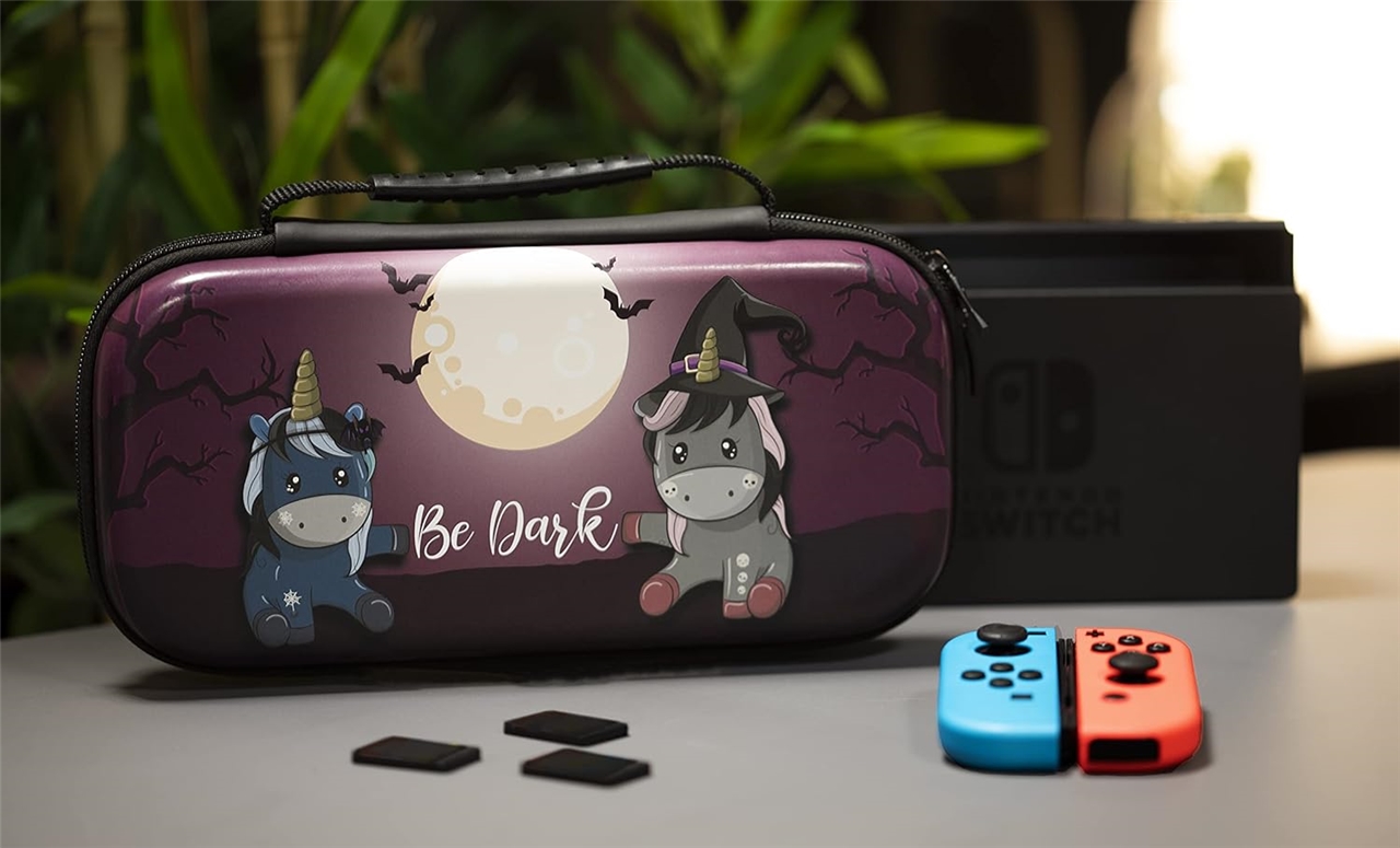 Ovitek ima ročaj za enostavno prenašanje in dvojno zadrgo. Notranjost ima mrežo za shranjevanje dodatne opreme, kot so joy-coni ali kabli. Pregrada za zaščito zaslona ima 8 žepkov za shranjevanje igralnih kartic.