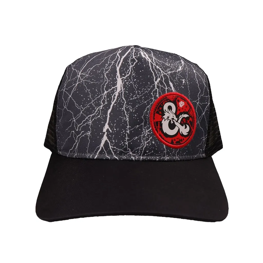 Kapa s šiltom z zadnjim mrežastim delom za igralce priljubljene igre vlog Dungeons and Dragons - kapo krasi grafika strele in logo znanega RPG
