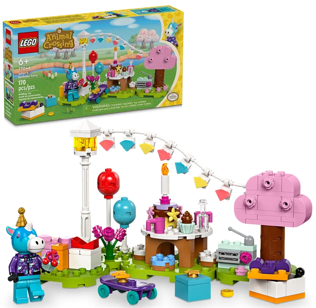 Ustvarjalni otroci, stari 6 let in več, bodo z gradbenico LEGO® Animal Crossing™ Julianova rojstnodnevna zabava uživali ure pripovedovanja zgodb in igre z obilico možnosti. Del te prilagodljive igrače je vrsta prikupnih dodatkov, ki jih mali graditelji dobro poznajo iz videoigre in bodo zagotovo prinesli neomejeno mero zabavnega igranja.
