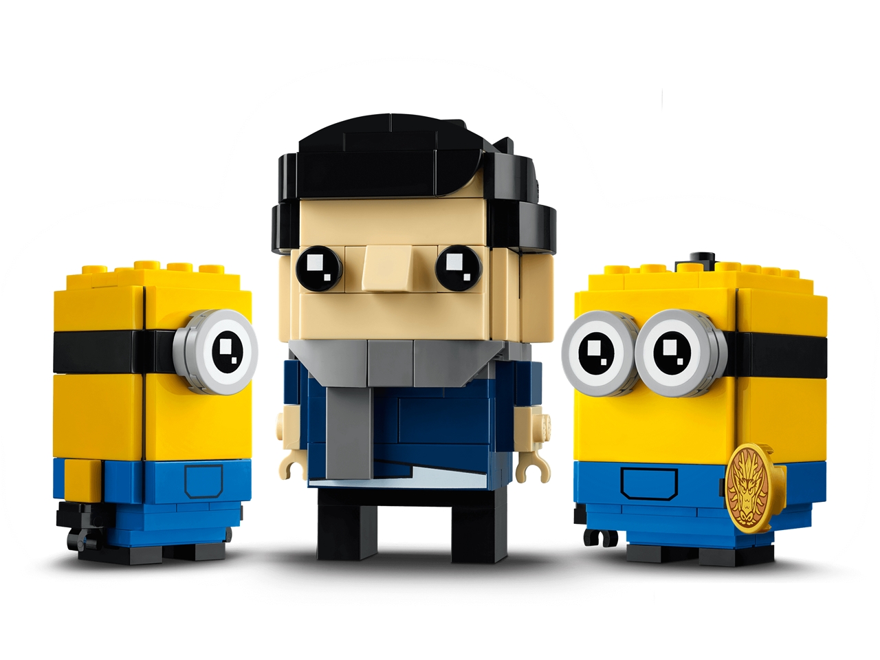 V kompletu Gru, Stuart in Otto iz LEGO® BrickHeadz™ so 3 lika iz filma Minioni: Gru, minion Stuart in minion Otto z zodiakalnim kamnom. Vse te figurice so del zbirke LEGO BrickHeadz, imajo svojo identifikacijsko številko in robusten podstavek za enostavno postavitev – bodisi samostojno ali ob boku drugih modelov iz serije BrickHeadz.