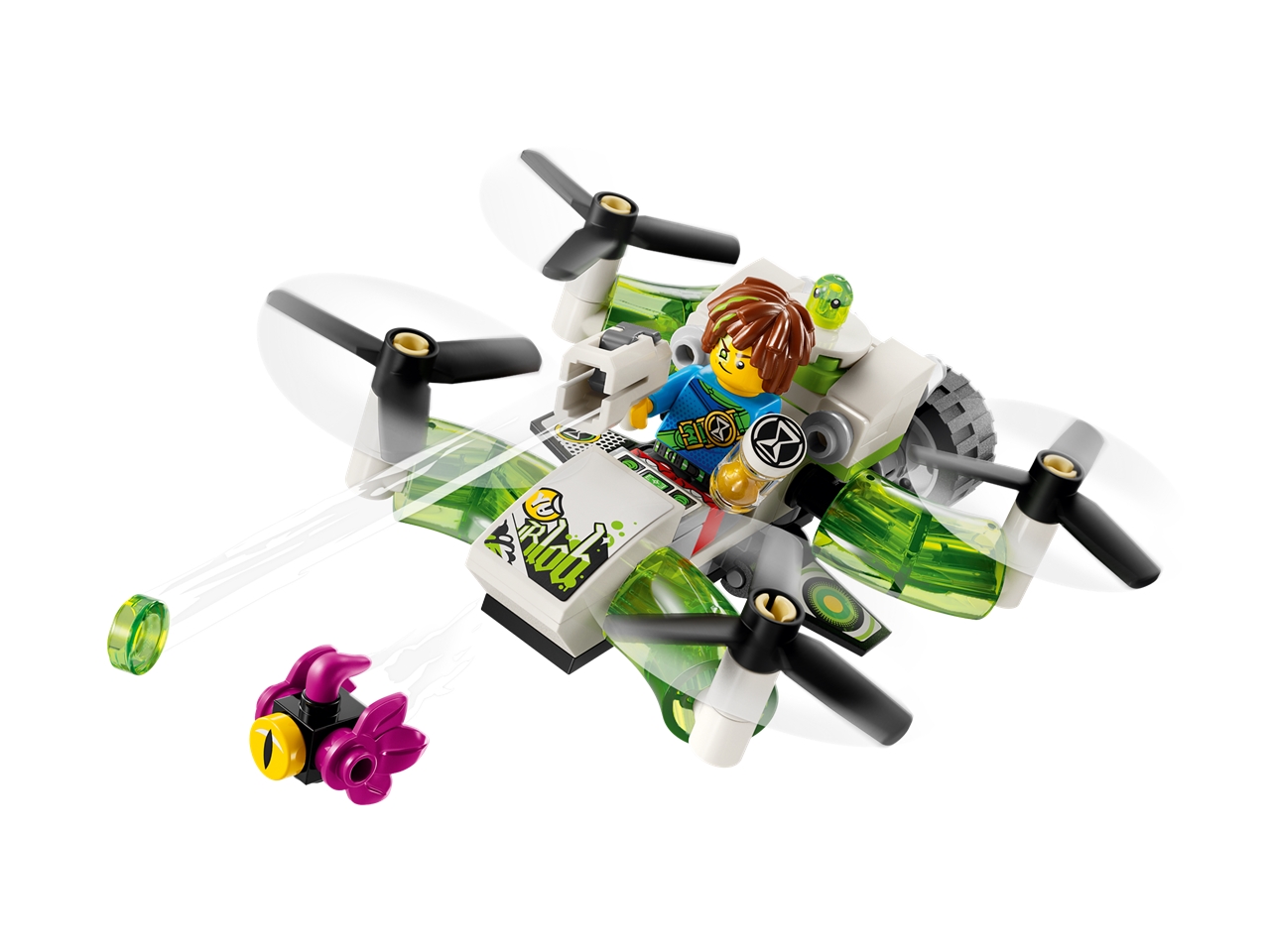 Otrok s kockami LEGO® DREAMZzz™ Mateo in njegovim terencem odkrivajo fantastični svet, navdihnjen s čudovito televizijsko serijo. Otroci zgradijo buggija ali kvadrokopter in se skupaj s pogumnim Mateom in Z-Flekom podajo, da bi ponovno pridobili čarobne peščene ure. Ta akcijski set ponuja kar 2 različici sestave in spodbuja otroško domišljijo. Otroci se podajo na pustolovščino po lastni domišljiji in izberejo med načinom buggija, ki predstavlja robusten terenski avtomobil, in načinom kvadrokopterja, ki predstavlja kompakten leteči stroj z izjemno močnimi zadnjimi motorji. Set oživljajo like LEGO DREAMZzz, vključno z natančno izdelano minifiguro Matea z izstreljevalcem.