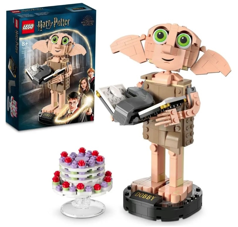 Razveseli oboževalce Harryja Potterja™ z vsega sveta s prvim modelom hišnega pritlikavca Dobbyja™ iz kock LEGO®. Takoj prepoznaven figurica iz kock ima nastavljivo glavo za različne videze ter gibljive roke in prste, tako da lahko Dobby drži priložene ikonične dodatke. Na voljo je podroben sestavljiv model Harryjeve nogavice z dnevnikom Toma Riddlea, ki ga je Harry uporabil za osvoboditev Dobbyja, in „lebdeča“ pudingova torta tete Petunije, ki vzbuja spomine na klasične prizore.