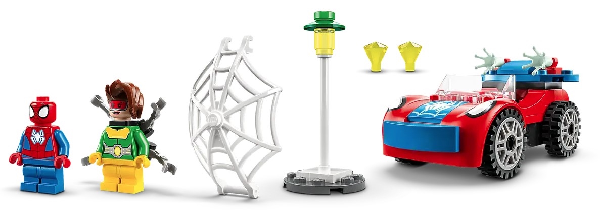 Kraja diamanta sproži akcijo in vodi do neskončnih domiselnih pustolovščin. Komplet vsebuje 2 minifigurici – Spider-Mana in Doc Ocka – ter tudi Spider-Manov avto z 2 elementi pajčevine, ki svetijo v temi. Začetniška kocka spodbuja male graditelje, da si Spider-Manov avto sestavijo sami.