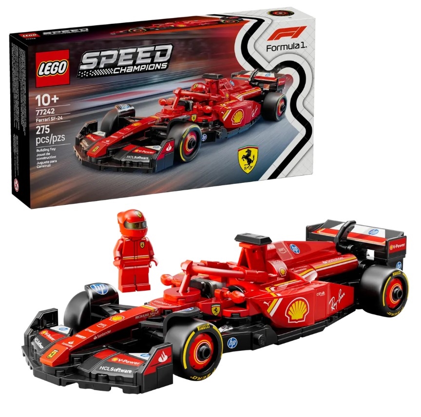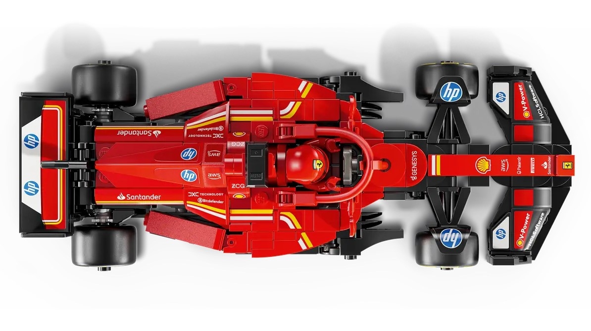 Model avtomobila Ferrari se ponaša s podrobnostmi, navdihnjenimi z resničnim avtom, ki je tekmoval v Formuli 1 v letu 2024, in otroci ter odrasli zbiratelji avtomobilov ga lahko sestavijo, razstavijo in z njim dirkajo. Ta model dirkalnega avtomobila F1 ima kokpit, ki ga je mogoče odpreti z dvigom halo, zadnje krilo, paralelogramsko vzmetenje, nalepke sponzorjev in širše zadnje pnevmatike z napisom „Pirelli“. V kompletu dirkalnega avtomobila F1 je tudi minifigura dirkača v Ferrari opremi s krilato čelado, ki jo lahko namestite v kokpit in pritisnete na plin. Kompleti LEGO Speed Champions omogočajo ljubiteljem avtomobilov sestavljanje modelov nekaterih najbolj znanih vozil na svetu, vključno z drugimi avtomobili.