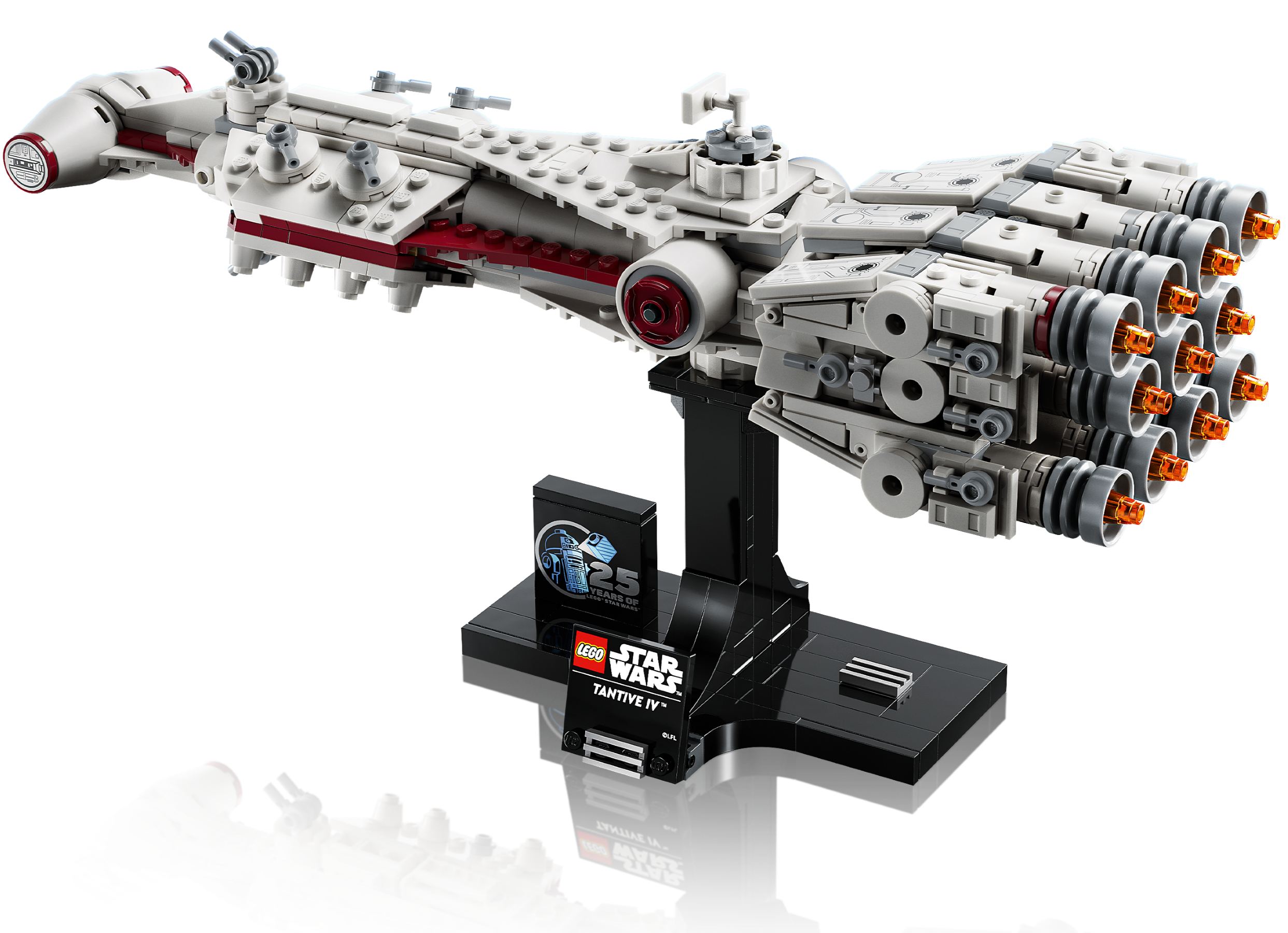 Izrazite napetost, ki ste jo občutili, ko ste prvič gledali uvodno sceno filma Star Wars: Novo upanje. Sestavite iz kock LEGO® model znane vesoljske ladje Tantive IV. Občutite moč svoje ustvarjalne Sile pri sestavljanju znanih detajlov ikonične zvezdne ladje, ki smo jo prvič videli, ko jo je zasledoval zvezdni uničevalec. Postavite model ladje Star Wars™ na sestavljiv podstavek in ne pozabite na tablico z imenom ter kocko ob 25. obletnici serije LEGO Star Wars.