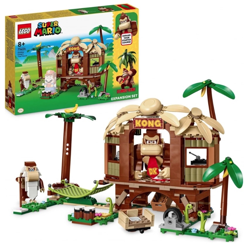 Hiša na drevesu je polna avtentičnih podrobnosti, ki bodo razveselile oboževalce Donkey Konga, vključno s sestavljivim televizorjem, radiem in skrivnim zavetjem. Otroci se lahko s svojimi figuricami LEGO® Mario, LEGO® Luigi ali LEGO® Peach™ (niso vključene) vozijo na hrbtu Donkey Konga, zadremajo v viseči mreži, stresajo banano z palme in jo podajo Donkey Kongu, ali pa na primer "igrajo" na kongo bobne, obiščejo Cranky Konga in še veliko več, da zberejo digitalne kovance.