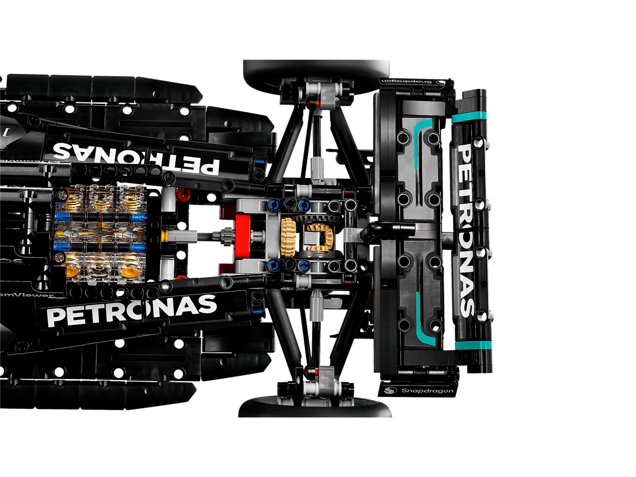 Med funkcijami je krmiljenje, ki ga je mogoče upravljati z volanom ali gumbom na zgornji strani avtomobila. Odstrani pokrov motorja in razkrij diferencial ter šestvaljni motor s premičnimi bati. Model z izjemno pozornostjo do podrobnosti vsebuje tudi odpiralno krilce, navdihnjeno s sistemom DRS pravega dirkalnika. Ta komplet modela avtomobila Mercedes F1 za odrasle je odličen predlog za darilo za navdušence nad dirkanjem, ki obožujejo odlične LEGO sete.
