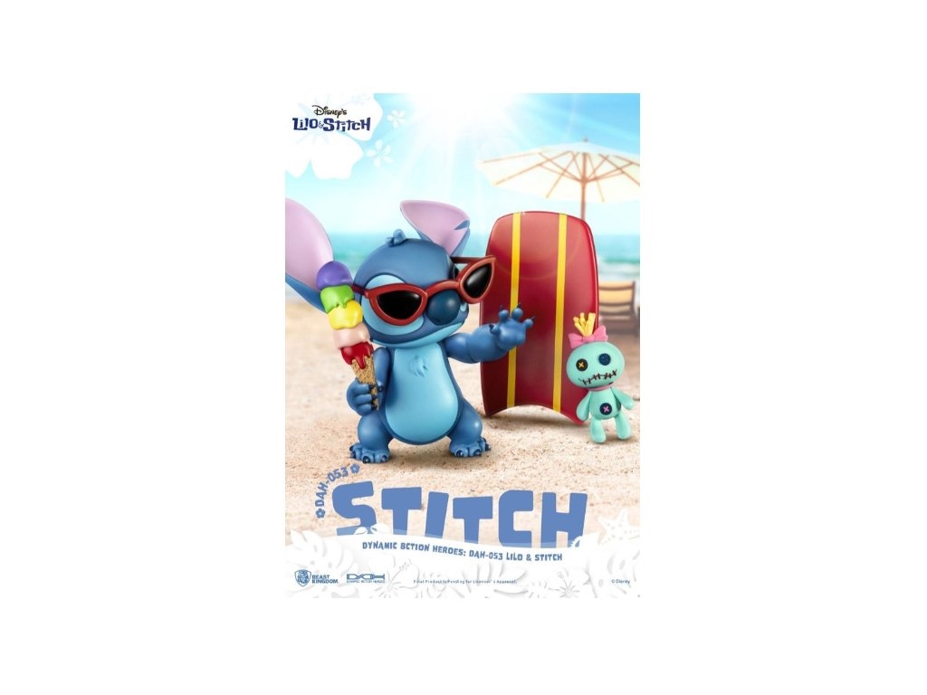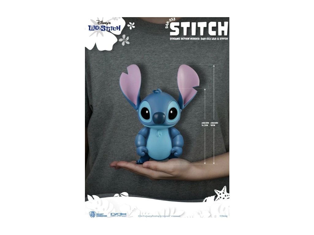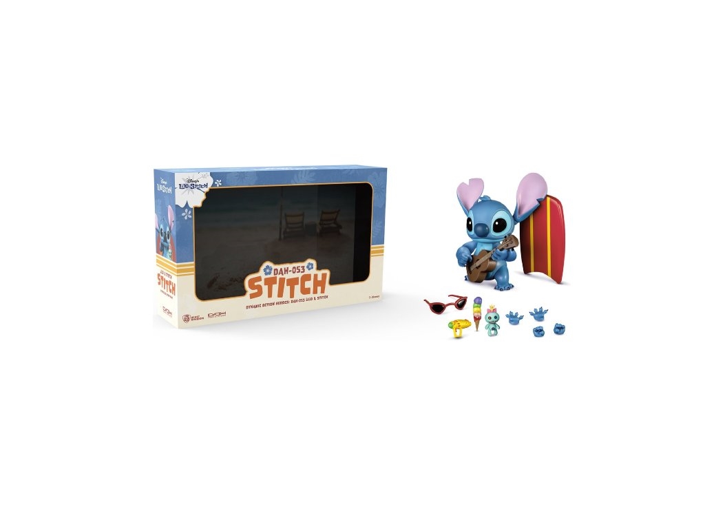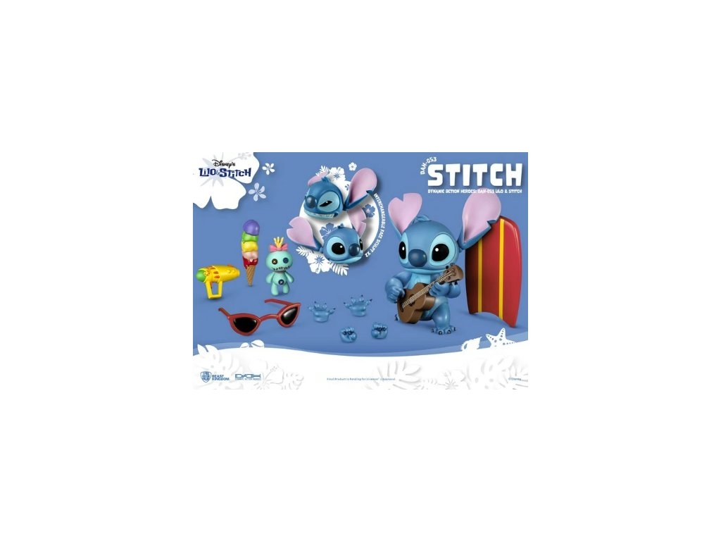 Stitch, nagajivi junak Disneyevega filma "Lilo & Stitch" (znan tudi kot Eksperiment 626), je tukaj z dvanajstimi gibljivimi sklepi, zamenljivimi ploskvami, zamenljivimi rokami in vrsto dodatkov, povezanih s Stitchom. Te funkcije oboževalcem omogočajo, da se igrajo s Stitchom in ga po svoje okrasijo — naj nosi njegove lepe sončne očale, je sladoled ali igra ukulele in poje. Zaradi njegove prikupne nagajivosti ga je težko odložiti. Oboževalci, ki imajo radi Stitcha, si tega zagotovo ne bodo želeli zamuditi! Razgibajte svoje telo s Stitchom in uživajte havajske vibracije. Figurica je visoka 18 cm.