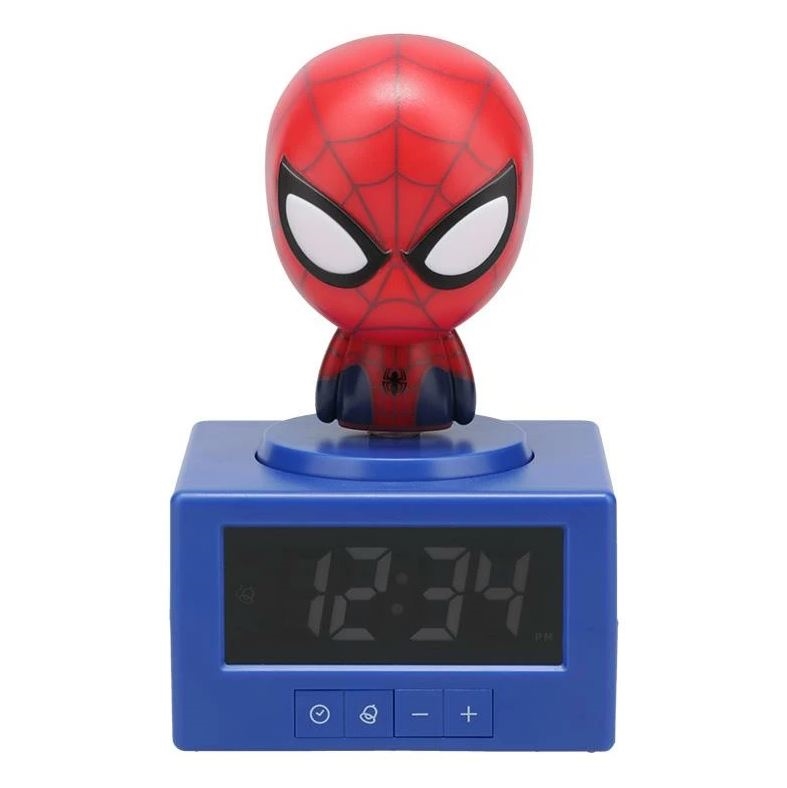 Ta 15 cm visoka digitalna budilka je okrašena z figurico Spider-Mana, ki ne samo odlično izgleda, ampak ima tudi druge funkcije. S pritiskom na Spider-Mana vklopite nočno lučko, z dotikom na njegovo glavo pa aktivirate funkcijo snooze (odložitev budilke). Popoln dodatek v spalnico vsakega mladega junaka!