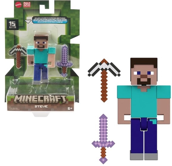 S temi figuricami in dodatki v merilu 8 cm Minecraft oživi! Vsaka figurica ima avtentičen pikselni dizajn, značilen za videoigro, in je opremljena z ikoničnimi dodatki, zaradi katerih je zbiranje zabavno. Figurice so idealne za igranje in razstavljanje, nastavljive z gibljivimi sklepi in ustvarjajo še več priložnosti za pripovedovanje zgodb.