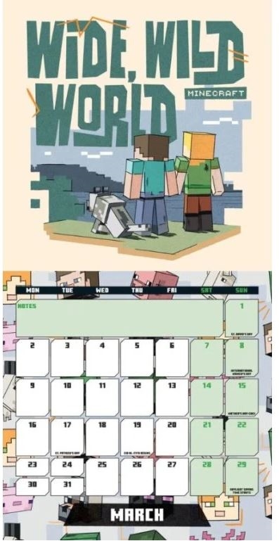 Potonite v svet Minecrafta s tem uradnim mini koledarjem za leto 2026. Ta koledar je popoln dodatek za vsakega oboževalca te priljubljene igre. Vsak mesec ponuja edinstvene slike likov in okolij iz igre, ki bodo zagotovo razveselile majhne in velike navdušence.