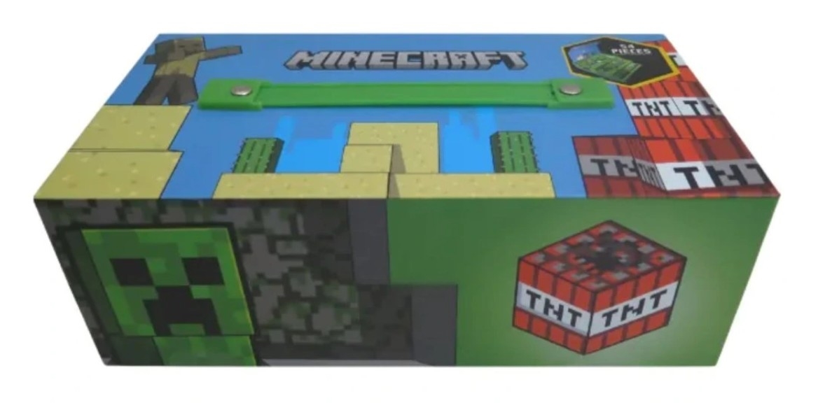 Kreativni kovček z motivom eksplozivnega Creeperja in bombe TNT iz računalniške igre Minecraft.