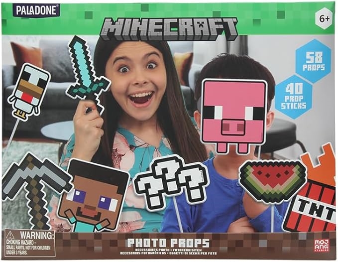 V paketu boste našli 58 Minecraft dodatkov in 40 palic za njihovo pritrditev. Ikonični predmeti, kot so meči, TNT bloki ali Creeperji, omogočajo kreativne fotografije in nepozabne trenutke.