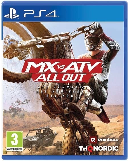 V igri MX vs ATV All Out boste izbirali med motokros motocikli, ATV in UTV, izpopolnili svoj slog vožnje na svoji zasebni progi, divjali po obsežnem odprtem svetu in tekmovali v različnih igralnih načinih.