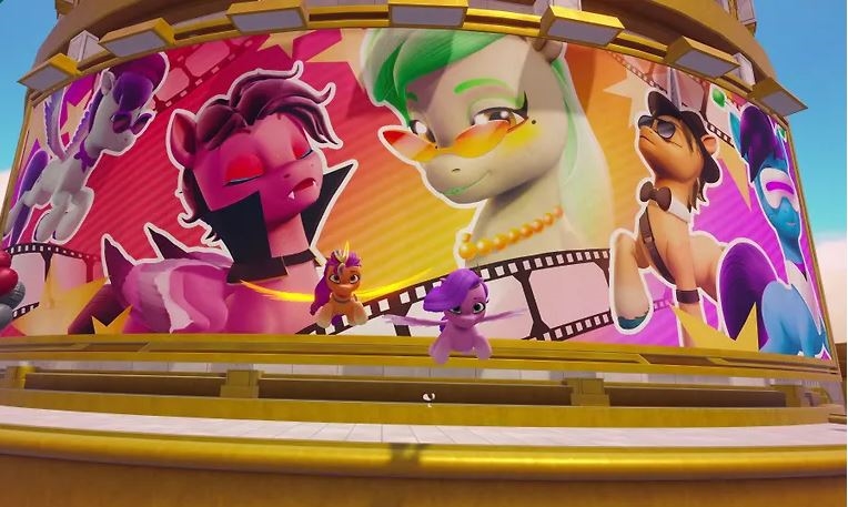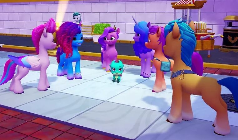 Igralne like so Sunny, Hitch, Izzy, Pipp, Zipp in Misty. Lahko uporabite svoje posebne sposobnosti za raziskovanje Wind Peak. To je bleščeče mesto na nebu, polno pegazov, s katerimi se lahko srečate in postanete prijatelji. Čaka vas veliko posebnih zbirateljskih predmetov, ki čakajo na odkritje, in zabavno fotografiranje z vašimi najljubšimi poniji. Čakajo vas tudi številni zabavni trenutki v družbi ponijev, zabavnih mini iger, kot sta Pippino fotografiranje ali Sunnyjev smoothie. Na voljo boste imeli tudi garderobo in različne dodatke, da si lahko ustvarite svoj lasten slog.