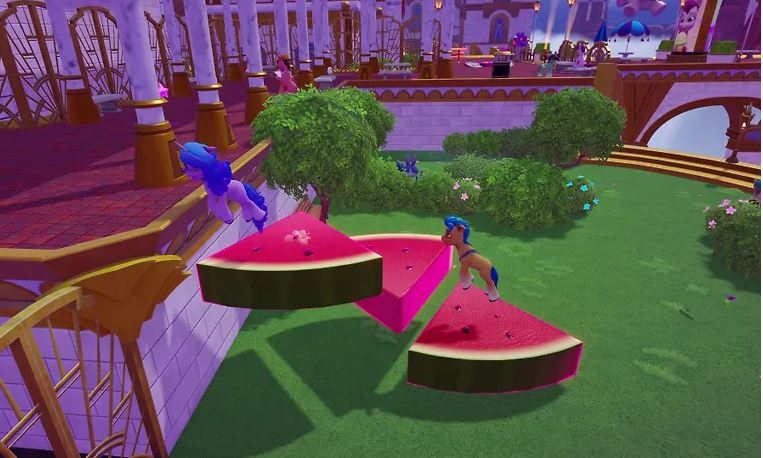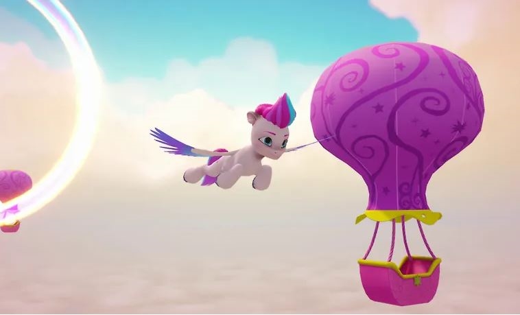 Glavne igralne osebe so Sunny, Hitch, Izzy, Pipp, Zipp in Misty. Lahko izkoristite svoje posebne sposobnosti za raziskovanje Wind Peak. To je bleščeče mesto na nebu, polno pegazov, s katerimi se lahko srečate in postanete prijatelji. Čaka vas množica posebnih zbirateljskih predmetov, ki čakajo, da jih odkrijete, in zabavno fotografiranje z vašimi najljubšimi poniji. Čakajo vas tudi številni zabavni trenutki v družbi ponijev, zabavnih miniiger, kot sta Pippiino fotografiranje ali Sunnyjev smoothie. Na voljo boste imeli tudi garderobo in različne dodatke, da si ustvarite svoj lasten slog.