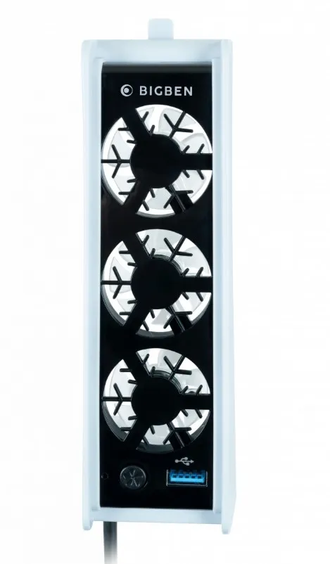 Izboljšajte odvajanje odvečne toplote iz svoje konzole PlayStation 5 Slim z dodatnim hlajenjem podjetja Bigben Interactive. Trije modro osvetljeni ventilatorji zagotavljajo učinkovito hlajenje tako za diskovno kot digitalno različico PS5 Slim in zaradi usklajenega dizajna popolnoma sovpadajo s konzolo.